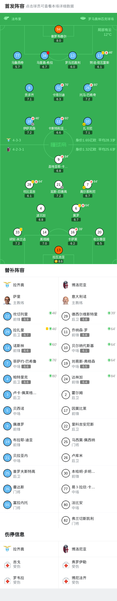 北京時間12月8日,意大利足球頂級聯賽第14輪賽事中,拉齊奧隊坐鎮主場迎戰博洛尼亞隊。拉齊奧隊由伊薩克森攻入一球。博洛尼亞隊則由延斯-厄德高取得進球。最終,雙方以拉齊奧1-1博洛尼亞的比分握手言和。